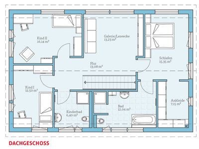 Das Musterhaus Variant 25-192 in München-Poing ist eine moderne Interpretation der klassischen (ober-) bayerischen Bauform. Aber nicht nur dort macht diese Architektur eine gute Figur: Mit seinem 2 m hohen Kniestock und dem flachen 25°-Satteldach ist der Entwurf ideal für Gegenden geeignet, in denen Baugrund teuer ist und dennoch, auch ohne Keller, viel Wohnfläche geschaffen werden soll. Auf mehr als 190 m2 finden neben dem offenen Wohn-, Ess- und Kochbereich mit Speisekammer, einem Arbeits- oder Gästezimmer mit Dusch-Bad auch zwei Kinderzimmer mit separatem Bad, ein Elternschlafzimmer mit eigener Ankleide und Wellness-Bad ihren Platz. Und wird – jetzt oder auch erst später – ein Raum mehr benötigt, kann die Galerie im Obergeschoss zu einem weiteren Zimmer umfunktioniert werden.